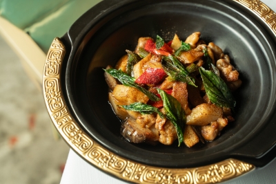 - Earth’s Renewal: Braised Thai Frog Legs with Bamboo Shoots, Shrimp Roe and Thai Basil - Inspired by early‑morning bamboo harvests in Chumphon and springtime memories of Tai Po Market, tender frog legs absorb the sweetness of seasonal bamboo shoots. Gently heated shrimp roe releases a nutty aroma, while Thai basil adds a finish reminiscent of a bamboo forest touched by spring rain.