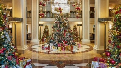 Magic and merriment await at Beverly Wilshire this holiday season, as the hotel transforms into a classic holiday wonderland adorned in rich red, green, and gold décor. Upon entering the lobby, be greeted by timeless decorations, providing the perfect backdrop for holiday cards.