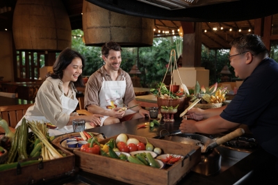 in-villa dining becomes an act of togetherness. Children gather in the kitchen for hands-on cooking lessons, beginning with a stroll through the chef’s garden to handpick makrut lime leaves and fragrant lemongrass. Executive Chef Alvin Dela Cruz shares, “I want guests to feel the soul of Thai cooking the moment they touch a fresh herb. Food is the language of connection — especially across cultures and generations.”