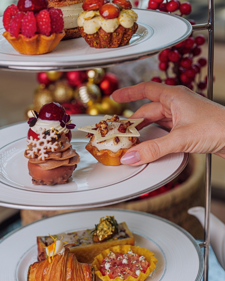 Al Meylas invites guests to a cherished holiday ritual of timeless elegance with Christmas Afternoon Tea from 3:00 pm to 7:00 pm, featuring Chestnut and Grapefruit Mont Blanc, Pistachio St. Honoré, maple pecan scones with clotted cream, and festive beverages in an elegant lounge setting.