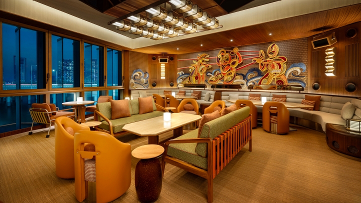 يستوحي سايكيندو تصميمه من حركة الميتابوليزم المعمارية اليابانية، والمعروفة برؤيتها المستقبلية، ومعمارها القابل للتشكيل والاحتواء الذي يتكيف مع الاحتياجات المتغيرة. تندمج هذه الفلسفة الاستشرافية ببراعة مع الدفء الإنساني لحِرفية منتصف القرن، لتشكّل مساحة يشعر فيها الضيوف بالحميمية والعمق الاجتماعي في آن واحد، حيث يلتقي الابتكار بالرقيّ الخالد. ستزدان المساحة بألواح خشبية فاخرة، وتفاصيل صوتية مصمّمة خصيصاً، وجدران منقوشة بخيوط مطرّزة، وأثاث أنيق يمنح المكان شعوراً بالحميمية والترف في آنٍ معاً. فكل سطح ولمسة في سايكيندو تحكي قصة فنٍّ حيّ، يمجّد الجمال والروح والإيقاع الذي لا يُنسى.