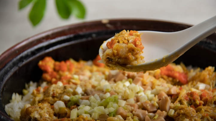 采逸轩秋季蟹宴菜单选用江苏宝应湖大闸蟹并配以10年古越龙山花雕,将黄酒与蟹味发挥到极致。主厨李强天马行空,将各种秋季食材与大闸蟹搭配,比如海胆、竹笙、鸡头米、豆腐等,带来不同美味。除此之外,蟹宴上连年登场的“秃黄油煲仔饭”是为人称道的佳品。每日限量供应,只取蟹膏和蟹黄制成的秃黄油与米饭的焦香交织在一起,是对这个季节最好的赞美。