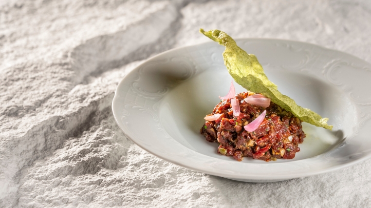 Tableside service adds a layer of theatre and hospitality to the Mio experience. When chefs prepare Tartare di Scottona tableside—using young heifer beef valued for its finer flavour and tenderness—or flambé Lo Zuccotto Fiorentino with rum, the meal becomes a point of conversation. “We want to explain how and why we’re doing a dish a certain way,” says Chef Francesco. “It’s a moment of discussion, an opportunity to exchange something about Italian culture.”