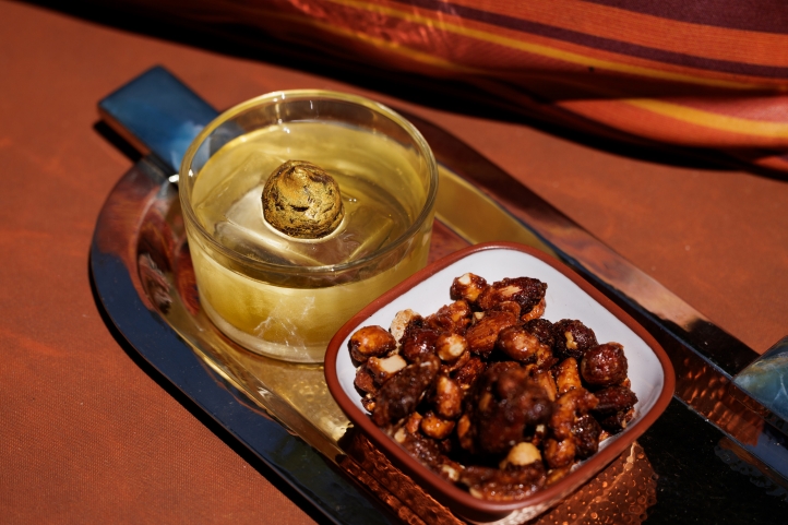 - Meteorito, Un cóctel a base de whisky, mantequilla de maní y humo, que representa un viaje por el espacio. Su perfil ahumado remite a la superficie quemada de un meteorito, reflejada también en su garnish: una trufa de chocolate y maní.