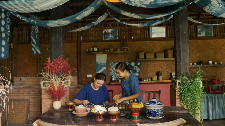 Beyond the kitchen, Chaan Baan opens the door to traditions that speak gently of community and craft. Planting rice alongside local farmers, bathing gentle buffaloes, and engaging in tie‑dye, pottery, Saa‑paper making, and candle crafting reveal the timeless rhythms that have sustained Northern Thai life for generations. Stepping into Chaan Baan is akin to entering the true heart of the region, where the stillness of the rice fields, the deep bond between people and the land, and the quiet joy of creating something by hand come together in a way that feels profoundly grounding. Each interaction encourages guests to slow down, appreciate everyday rituals, and connect with local culture in a manner that is heartfelt, immersive, and deeply meaningful.