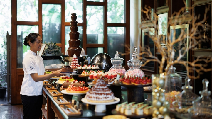 ของหวานคือหนึ่งในไฮไลท์ในมื้ออาหารนี้ เอ็กเซ็กคิวทีฟ เพสทรี เชฟ ญาณิศา เวียงนนท์ นำเสนอขบวนพาเหรดของหวานสุดตระการตา ตั้งแต่เมนูซิกเนเจอร์ อย่างข้าวหมากชีสเค้ก ไปจนถึงขนมเพสทรีอื่นๆ ที่ได้แรงบันดาลใจจากฤดูกาลต่าง ๆ สเตชันของหวานสดแบบไลฟ์คุกกิ้ง ยังเพิ่มความรู้สึกเหมือนได้รับชมการแสดง ขณะที่บริการทีรามิสุพร้อมตักตามสั่งมอบสัมผัสพิเศษให้แขกได้ลิ้มรสอย่างเต็มอิ่มจนถึงคำสุดท้าย “Feast คือประสบการณ์ของการมีปฏิสัมพันธ์ งานศิลป์ และความสุข” ญาณิศากล่าว “ทุกเมนูของหวานถูกบรรจงรังสรรค์ขึ้น เพื่อปลุกทุกประสาทสัมผัสให้เบิกบาน”