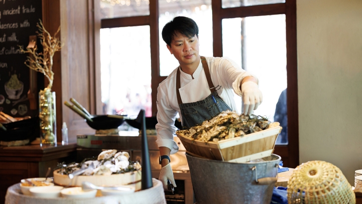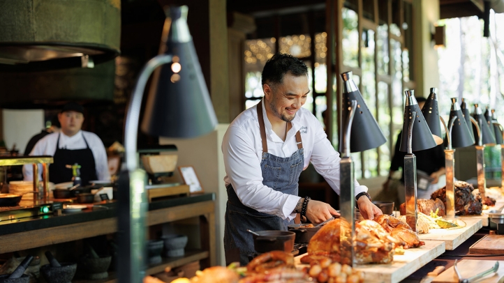 ประสบการณ์มื้ออาหารถูกถ่ายทอดผ่านเมนูไฮไลท์ที่คัดสรรมาอย่างพิถีพิถัน ไม่ว่าจะเป็นสเตชั่นปิ้งย่าง เช่น กุ้งแม่น้ำย่าง เนื้อคุณภาพเยี่ยม และผักตามฤดูกาล หรือมุมฟาร์มสู่โต๊ะอาหาร ที่แขกจะได้สัมผัสความสดใหม่จากไร่ ไม่ว่าจะเป็นสมุนไพรหอมสด ไข่ออร์แกนิก หรือซอสและเครื่องปรุงโฮมเมด