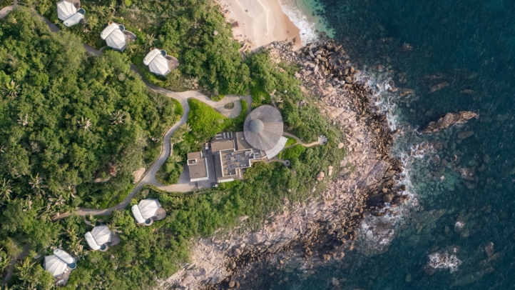Further north, Naviva, A Four Seasons Resort, cultivates a singular vision of luxury as the brand’s first adult-only tented retreat in the Americas. With just 15 ocean-view tented bungalows nestled within 48 acres (19 hectares) of jungle, the luxurious refuge serves as a sanctuary where nature shapes every moment. Transactions are stripped away, allowing dining experiences, spa journeys, and unscripted adventures to flow seamlessly in sync between the guest and the destination. Guests forge meaningful connections with place and people through cultural experiences such as raicilla tastings led by master distillers, temazcal ceremonies in the custom “house of heat,” and hands-on sessions with local artisans ranging from botanical printmaking to handcrafted bookbinding. As day turns to evening, Naviva Unplugged offers an intimate concert series where award-winning musicians perform stripped-back sessions in dialogue with the surrounding landscape.