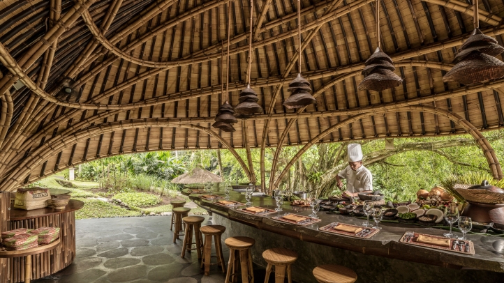 A farm-to-table cooking class with Chef Wayan Sutariawan deepens the connection to place, blending heirloom recipes with personal stories. The journey concludes with the Restu Bumi Treatment, a sacred healing ritual of sound, stone, and herbal therapy, leaving guests grounded and renewed.