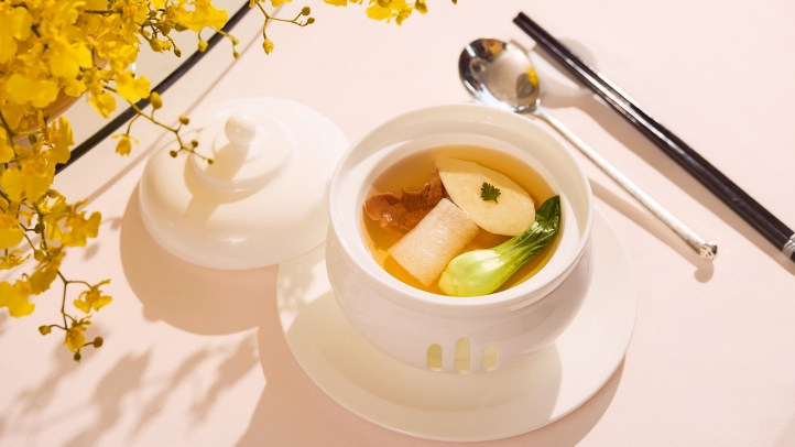 - Jiang-Nan Chun, Singapore (Michelin-recommended): Double-Boiled Chicken Soup with Sea Whelk and Morel Mushrooms Served in Whole Coconut — Simmered over many hours using a time-honoured Cantonese technique, the broth gently draws out the natural sweetness of coconut while sea whelk, dried scallops and morels lend layered depth, offering a restorative and quietly invigorating expression of the season’s transition.