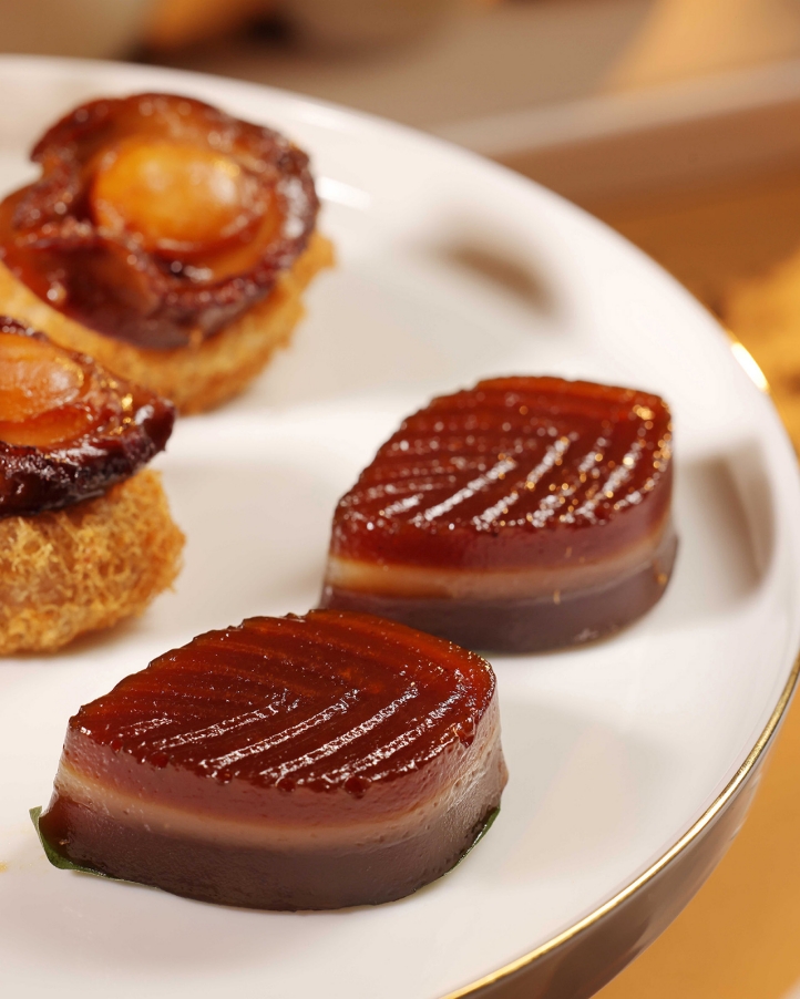蜂巢荔茸鲍鱼酥纹路清晰,尽显精致。融合荔茸的绵密香甜与鲍鱼的弹润鲜美,咸甜交织,鲜香十足,每一口都能感受到食材的本真之味与手艺的精湛绝妙,尽显匠心。