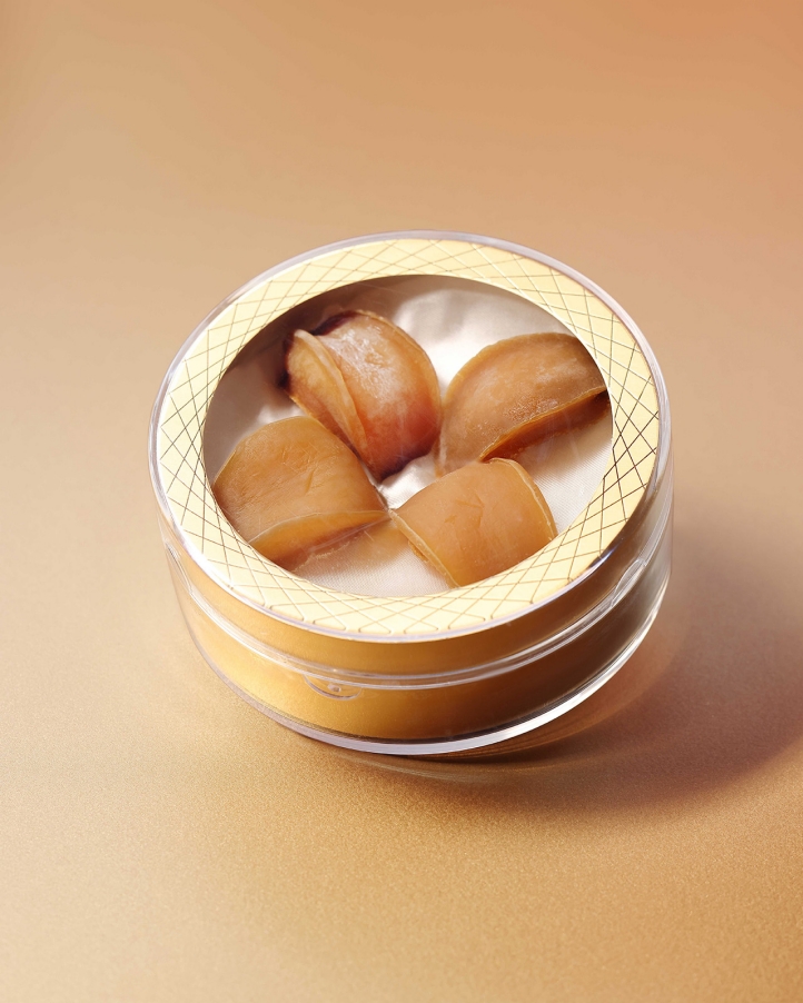 This gift box features four premium ingredients and two great wines, each meticulously selected to showcase uncompromising quality. Inside: four pieces of 12-head dried abalone, plump and firm with abundant collagen — a treasure among seafood delicacies; 150g of 120-head dried scallops, plump and full of rich umami with a lingering sweetness; dried tangerine peel, mellow and aromatic, enhancing flavour while promoting digestion; black tea, tightly rolled with a deep red infusion and honeyed notes, adding a warm, tea-infused touch to the festive spirit.