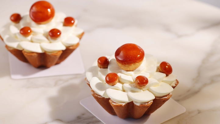 For those who savour texture, the Grapefruit Tart presents a handcrafted crisp shell crowned with silky yuzu curd, highlighting both buttery richness and citrus clarity. The Vanilla Flower Saint-Honoré completes the collection with petal-edged pastry, orange-infused diplomat cream, caramel sauce, and glossy cream puffs that sparkle like morning dew - an ode to French pâtisserie at its finest.