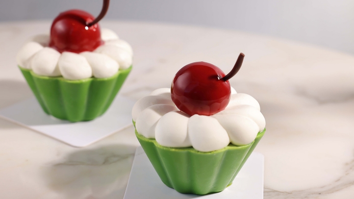 At Fresca, spring arrives in softly layered hues and carefully composed flavours. The French Strawberry Mousse is finished with cream piped into delicate petals over a blush pink-to-ivory gradient, like blossoms opening beneath a clear sky. The Cherry Matcha Cake pairs vibrant cherry mousse with a fresh matcha base, layered with light cream and studded with fresh cherries for a lively and satisfying bite.