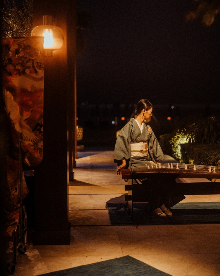 A Japanese DJ set will bring a contemporary rhythm to the evening, blending seamlessly with the tranquil seaside setting. Guests will also have the opportunity to admire an elegant display of kimonos and yukatas, adding an element of timeless tradition, with participation encouraged during dinner.