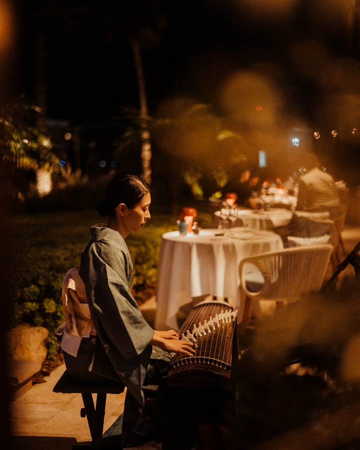 Guests will be immersed in a rich cultural journey, featuring a live Koto performance, where the delicate sounds of the traditional Japanese string instrument will drift across the shoreline. In graceful synchrony, Sea Fu’s team will honour each guest with a personalised tea ceremony, presenting intricately handcrafted coasters made from recycled kimonos. This thoughtful gesture not only celebrates the beauty of Japanese craftsmanship but also reflects Sea Fu’s ongoing commitment to sustainability, breathing new life into fabrics that once carried their own stories. To deepen the sense of immersion, guests are warmly invited to don a yukata for the duration of the evening, embracing tradition in both spirit and form.