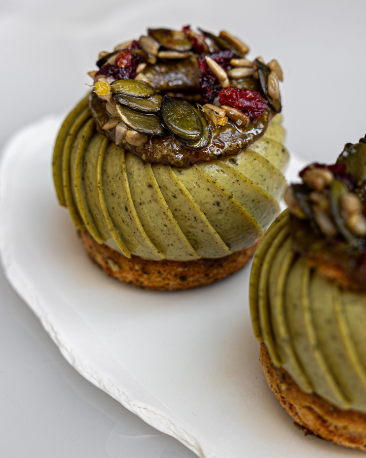 For Michaël Bartocetti, pastry is a dialogue between nature and craft. “Raw ingredients provide me with inspiration,” he says. “I use top-quality produce, bringing out the ingredients’ natural tastes and aromas to obtain delicate and harmonious flavours.” His philosophy is shaped by his French upbringing and early years spent in his family’s kitchens. He celebrates seasonal fruits, approaching them like a chef: seasoning, adding condiments, and carefully balancing sweetness to express a sense of equilibrium that reflects his focus on purity and structure.