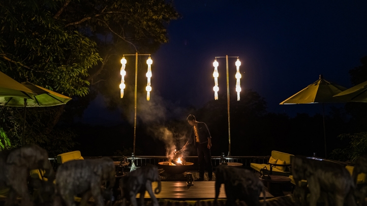 Set in an intimate, relaxed atmosphere at Mai Pai Lounge, guests are welcomed after dinner to settle by the glowing fire with a curated selection of hot drinks, digestives, toasted marshmallows and popcorn — simple comforts that evoke childhood memories, elevated by meaningful storytelling and a remarkable jungle setting.