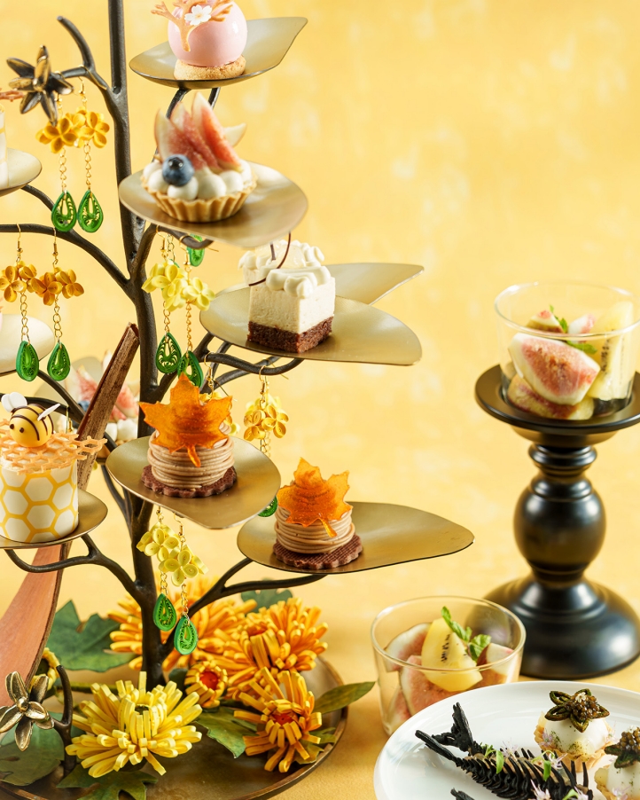 金桂在卷纸间吐纳秋意,秋菊于层叠中翩然生姿。每一道褶皱皆由匠人指尖传递温度,将诗意凝于茶席。咸点依循时令:风干番茄藏江南烟雨,松露菌菇隐山野秋韵;甜点承艺入境:焦糖栗子染就秋色渐变,蜂蜜琼糕酿出丰收欢愉,咖啡师特调「少年游」桂花系列,以香气织就的味觉旅行。无论独酌或共赏,皆可在此方寸席间,邂逅非遗匠心与四季流转的风雅对话。双人下午茶套餐人民币628+15%/套,适用于2025年9月1日至11月30日。