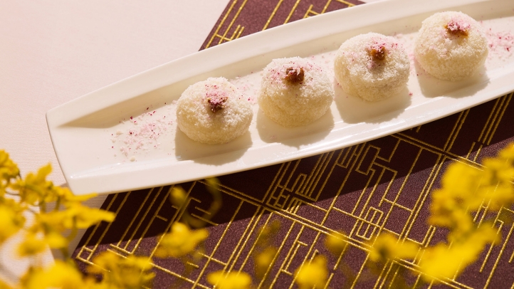 - Glutinous Rice Dumplings with Osmanthus and Aged Mandarin Peel (HKD 120* four pieces): Aromatic aged citrus peel is blended with osmanthus and low-sugar lotus seed paste, wrapped in soft glutinous rice dough. Delicate and gently floral, the dessert offers a light and elegant finale to the spring feast.