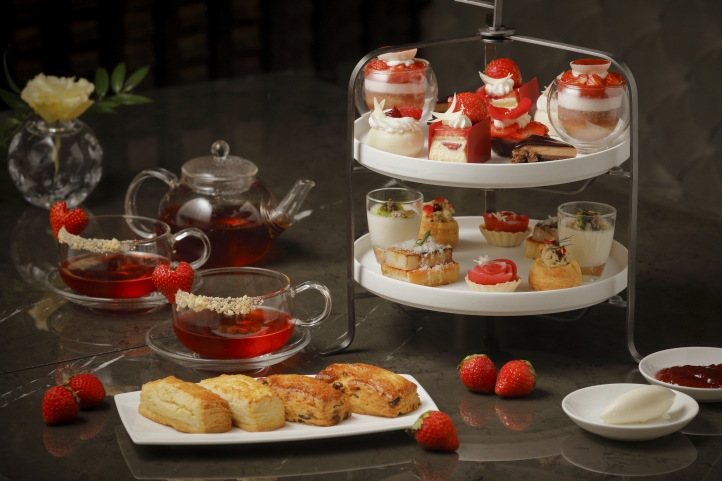 Strawberry Afternoon Tea: A showcase of seasonal dainties to light up frosty afternoons. Starring ripe strawberries and fragrant roses, five exquisite sweets bring winter’s glorious harvest to the table. Guests can discover highlights like the classic Fraisier, made with Hokkaido strawberries, and the delicately perfumed Strawberry Rose Mousse, wrapped in silky white chocolate.