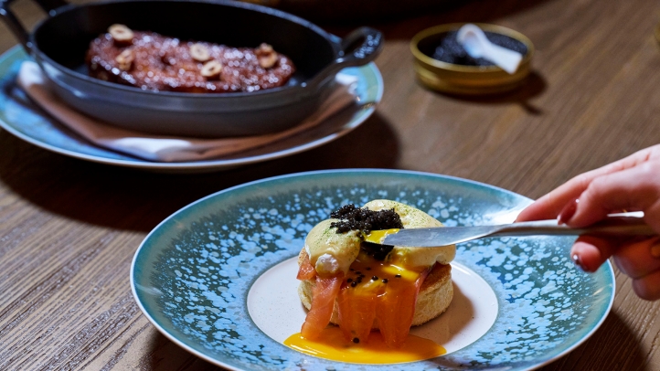 Priced at GBP 70 per person, guests can begin with a bespoke amuse-juice and a seasonal bakery creation from Executive Pastry Chef Francesco Mannino. Guests then select from delicately spiced Chai Pudding with Mango or Seasonal Granola with Berries, before the menu’s main event. The difficult choice is between Pavyllon's Weekly Chef's Special - a weekly-changing, showstopping breakfast signature with previous creations including the Heart of Italy (a pan-fried pizza with tomato and burrata), Turkish Eggs, and the viral Tiramisu Pancakes - or the indulgent classic Eggs Royale. Caviar Oscietra is available to add-on at GBP 5 per gram.