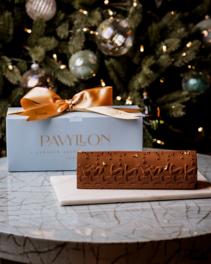 Pavyllon’s Bûche de Noël is priced at GBP 88 and available to order for collection from December 15 to 26, 2025.