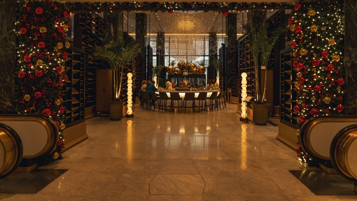 This year also marks the introduction of an elevated design vision for the 2025 holiday season featuring sculptural arches composed of mirrored and matte red and gold ornaments of varying scale; lush, oversized floral arrangements in vivid reds and deep greens; metallic gold installations; and warm, atmospheric lighting. Together, these elements create a contemporary, festive welcome throughout the hotel.