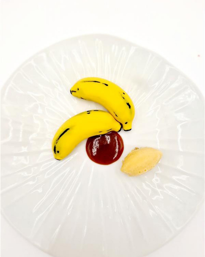 Lilikoi Banana - A celebration of island flavours, this gluten-free dessert pairs Banana Rum Cream with Lilikoi Caramel and Banana Lilikoi Sorbet.