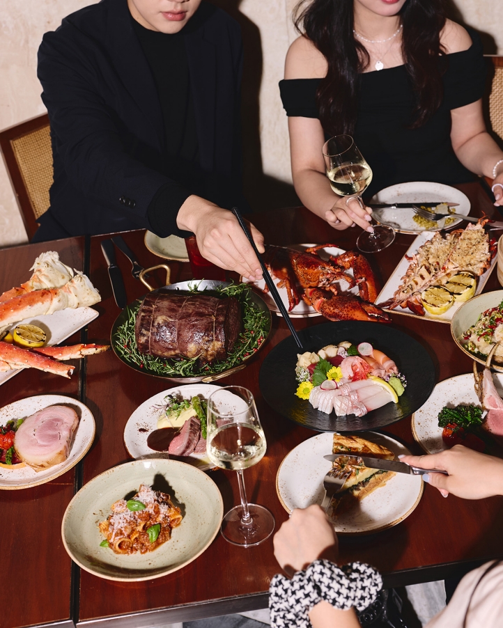 At Akira Back, festive dining takes on a creative edge with Japanese-Korean fusion menus for lunch and dinner. Dishes such as yellowtail Tataki, seasonal sashimi, and grilled hanwoo 1++ strip-loin showcase the restaurant’s signature bold style, combining premium ingredients with inventive presentation. For the holidays, Akira Back presents a Holiday Lunch Set (December 24, 25, and 31, 2025) and a Holiday Dinner Set (December 24, 25, and 31), featuring refined creations such as tuna and courgette pizza, grilled lobster with sea urchin, and Charcoal-Grilled Andong Hanwoo 1++ Sirloin and Fugu Karaage —crafted to deliver a truly elevated festive dining experience.