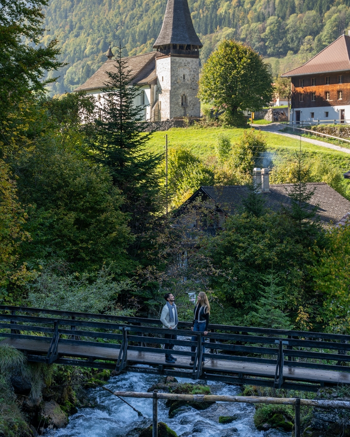 Le village de Gruyères a donné son nom au célèbre fromage suisse, élaboré à partir de lait non pasteurisé. Promenez-vous tranquillement dans sa rue centrale pittoresque avant de visiter le château médiéval perché sur la colline, un véritable décor de conte de fées avec les Alpes enneigées en toile de fond.