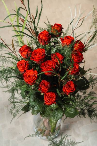 - Romance in Bloom - USD 375 - Arrive to a contemporary dozen-rose arrangement, a personalized message card, and an elegant heart display of blush rose petals thoughtfully arranged on the bed or in the bathtub.