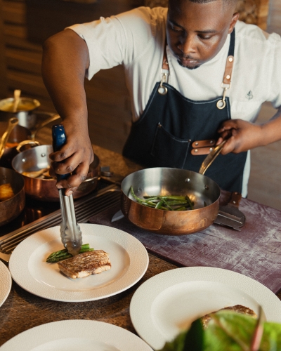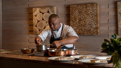 Executive Chef Rudi Liebenberg, formerly of The Mount Nelson and the Saxon, has built a menu around the wines course by course: crayfish, duck with truffle, lamb loin en croute with slow-braised shin and sweetbreads, and a mature cheddar verrine to close.
