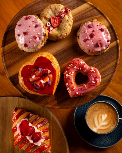 Mornings begin at PRESS Coffee Bar with PRESSed with Love, a limited-time Valentine’s pastry collection by Pastry Chef Maruschka Ang. Featuring house made favourites like Strawberry Cream Danishes, Red Velvet Cake, Raspberry Chocolate Scones, and delicate Linzer Cookies, the assortment is perfect for sharing, gifting, or taking home. The Velvet Rose Latte, softly floral and just sweet enough, adds a romantic finish to the morning ritual.