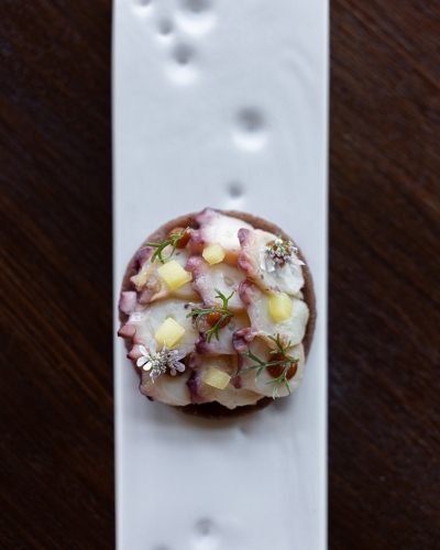 His travels have deepened that foundation, particularly in Japan, where he explored the culture of umami, precision, and deep respect for the ingredient, principles that directly inspires his cooking at Auro. In Napa Valley, he finds a landscape that mirrors that beginning: agricultural, seasonal, driven by the integrity of what comes from the ground. Outside the kitchen, Neumann is drawn to the water. He is an avid fisherman who finds balance offshore, disconnecting from land and reconnecting with the calm and vastness of the open sea.