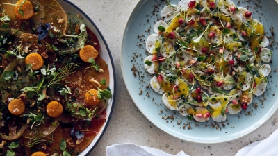 Guests will be treated to a journey of global flavours, beginning with Yellowfin Tuna Bombs and Ginger Persimmon Tartlets, followed by highlights such as Saffron-Goat Cheese Tortellini, Local Fish Pollichathu wrapped in banana leaf, and Lamb Saddle with kumquat, spinach farse, and fermented black garlic mousseline. The evening concludes with a Cardamom-Spiced Caraïbe Chocolate Cake and a sweet farewell of Saffron-Lychee Macarons. Priced at USD 175 per person; reservations made be made here.