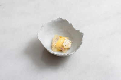 Mais do que uma sucessão de pratos, o menu do CURA é uma narrativa culinária cuidadosamente elaborada que presta homenagem aos ingredientes sazonais e aos pequenos produtores de Portugal. Cada prato é concebido como um gesto de respeito pelo produto e pela terra, e um exercício criativo que surpreende pela sua abordagem minimalista, mas que proporciona sabores profundamente expressivos.