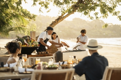 Culinary experiences across the resorts also emphasise connection, from interactive cooking classes to private beach barbecues and family-style dining inspired by local traditions. At Four Seasons Resort Bali at Jimbaran Bay, the Bikes, Beach & Barbecue experience combines community engagement with celebration, as families assemble bicycles for local children before enjoying a beachside evening together. A Taste of Sayan invites families to master six Balinese dishes before crafting cocktails from garden-fresh ingredients — a hands-on journey from earth to table. At The Nam Hai, Vietnamese cuisine is reimagined for modern families, while relaxed beachfront venues create effortless moments from morning coffee to moonlit cocktails.