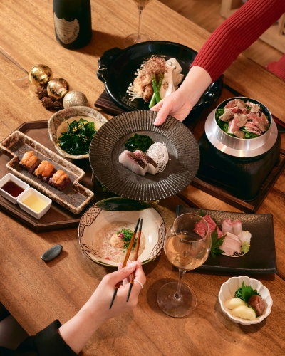 At Akira Back, festive dining takes on a creative edge with Japanese-Korean fusion menus for lunch and dinner. Dishes such as yellowtail Tataki, seasonal sashimi, and grilled hanwoo 1++ strip-loin showcase the restaurant’s signature bold style, combining premium ingredients with inventive presentation. For the holidays, Akira Back presents a Holiday Lunch Set (December 24, 25, and 31, 2025) and a Holiday Dinner Set (December 24, 25, and 31), featuring refined creations such as tuna and courgette pizza, grilled lobster with sea urchin, and Charcoal-Grilled Andong Hanwoo 1++ Sirloin and Fugu Karaage —crafted to deliver a truly elevated festive dining experience.