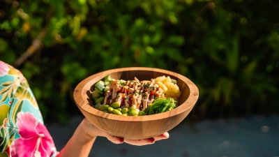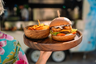 The menu brings together global influences and local ingredients, featuring dishes such as a Brisket Burger, Tuna Poke Bowl, and Som Tum Thai, alongside Cajun-spiced Pulled Chicken, Grilled Shrimp with Lemon, and fresh island salads. Each dish is designed to be flavourful, approachable, and well-suited to the coastal setting.