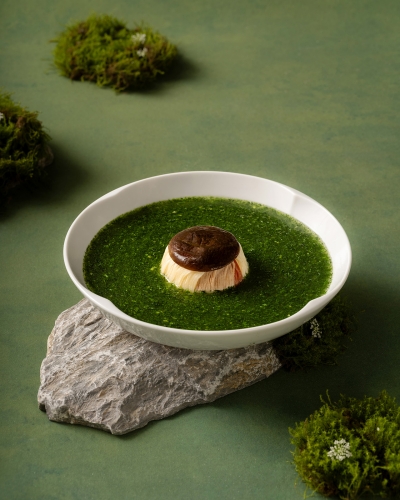 - Steamed Duck with Fish Maw, Conpoy, Shepherd’s Purse and Bamboo Shoot - Drawing inspiration from the Qing Dynasty culinary classic Duck Hash in Yuan Mei’s Suiyuan Shidan - a Qing Dynasty culinary classic that systematically records Chinese cooking philosophy and techniques that remain influential in fine dining today, the chef reinterprets this heritage dish with the refined technique of Jiangnan style “Braised Shredded Delicacies.” Premium ingredients including Jinhua ham, fish maw, and bamboo shoots are meticulously layered, and for spring, the composition is delicately accented with shepherd’s purse, introducing a note of seasonal freshness and subtle elegance.