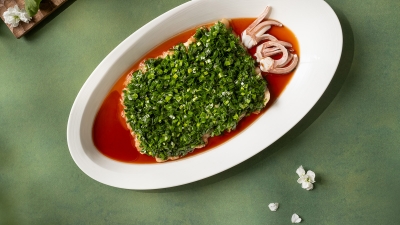 - Braised Turtle with Pork Skin and Scallions - Drawing from the culinary traditions of Shanghai’s Sanlin region, Chef Charles pairs premium pork skin with turtle in a rich scallion braise. The pork skin absorbs the savoury sauce, becoming soft and flavourful, while the tender turtle meat offers a satisfying depth—a dish that speaks to the robust flavours of both Hu and Su cooking traditions.