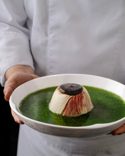 The menu balances traditional techniques with modern creativity. One standout, Steamed Duck with fish maw, conpoy, shepherd’s purse and bamboo shoot reimagines a Qing Dynasty classic with refined knife work and seasonal ingredients—fresh shepherd’s purse adds a bright spring note. Other highlights include Grilled Cuttlefish Roes with spring bamboo shoots and soy sauce; Pork Consommé, Bean Curd with bird’s nest, garden greens, bamboo shoots and preserved pork, each offering a fresh take on Jiangnan’s rich culinary heritage.