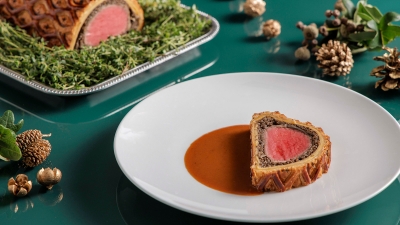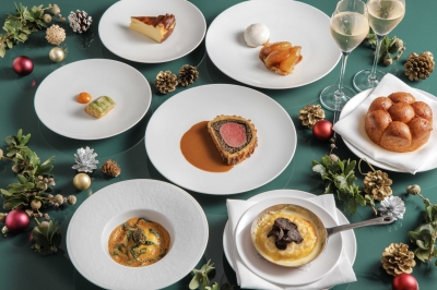 Festive Dinner at MAISON MARUNOUCHI. Crafted by Sous Chef Raul Savi, this French-inspired showcase incorporates fine ingredients from Japan, France and Italy – all served in the bistro’s Parisian-inspired warmth. Highlights include the Soufflé Suissesse, crafted with 12-month-old Comte and winter truffle, and the Normandy Lobster Ravioli, crowned with Ostera caviar. The Beef Wellington is made with Hokkaido beef fillet, meticulously aged for 14 days and wrapped with prosciutto, spinach, mushroom duxelles and more.