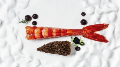 - Red Carabinero Prawn — a hallmark of Chef Shiv’s global repertoire, paired with BC lavender butter, wild blueberry gel, and maple‑browned morels.
