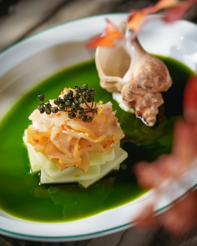 位于酒店8层的米其林一星中餐厅·颂全新呈现秋日菜单,由中餐行政总厨曾东海甄选舟山九节虾、钱江米鱼、奉化芋艿等当季时珍,以现代厨艺重塑甬地风味,勾勒一席“秋收山海,甬味风土”的金秋盛宴。