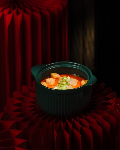 苏州藏书羊肉作为冬令进补的佳品,深受食客喜爱。张师傅以糟香这一江浙特色味型为基调,加入新鲜的冬笋,精心烹制出这道糟香红汤羊腩暖锅,羊肉鲜嫩多汁,羊汤鲜美浓郁,糟香与羊肉的香气相互映衬,冬笋的清爽脆嫩为整锅汤品增添了一份别样的风味。在一席腾腾热气中品味着江南暖冬的温馨与美好。