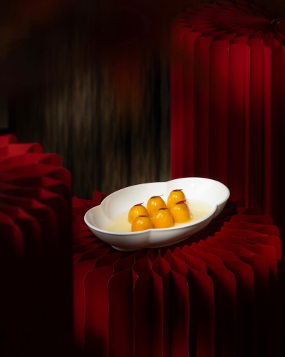 临近春节,江南古镇的酱肉香气弥漫在大街小巷,这是对新年的记忆也是传统美食文化的独特印记。张主厨怀着对这份传统美食的深深眷恋,将同里酱肉以双拼的形式呈现于食客面前。精选腊肠与猪肘肉呈现同里酱肉双拼,咸香浓郁的味道中饱含着岁月的沉淀与浓浓的乡情,让食客在品尝美味的同时,也能感受到传统美食文化的传承与延续。