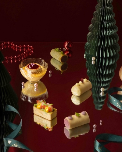 酒店饼房匠心打造多款手作经典糕点及雅致礼篮,以圣诞礼馔传递节日问候 —— 德式香料黄油脆饼、经典圣诞曲奇、造型别致的树形姜饼、精巧姜饼屋、风味醇厚的德国斯托伦蛋糕,以及经典原味、浓醇巧克力、清新开心果三种风味的意大利潘纳托妮;更有设计典雅的潘多拉金属珍藏礼盒,满载节日祝福。
